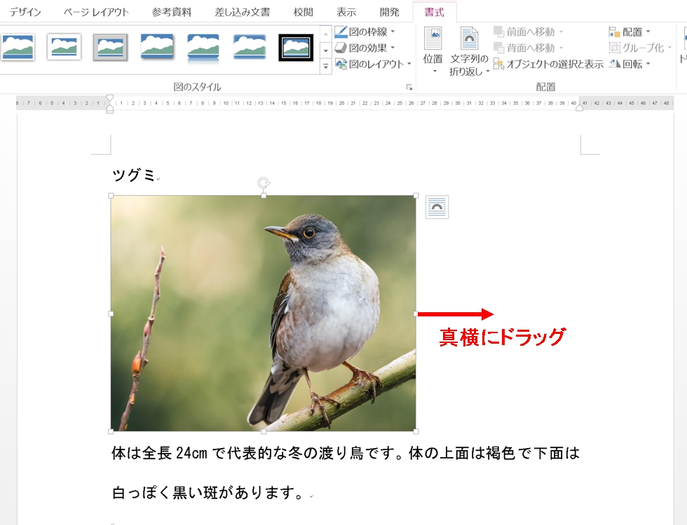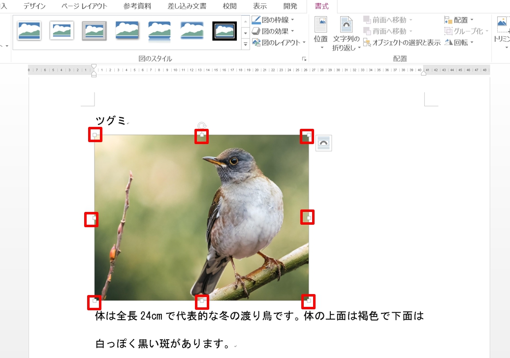 画像のハンドルを使うと簡単にサイズ変更できます。