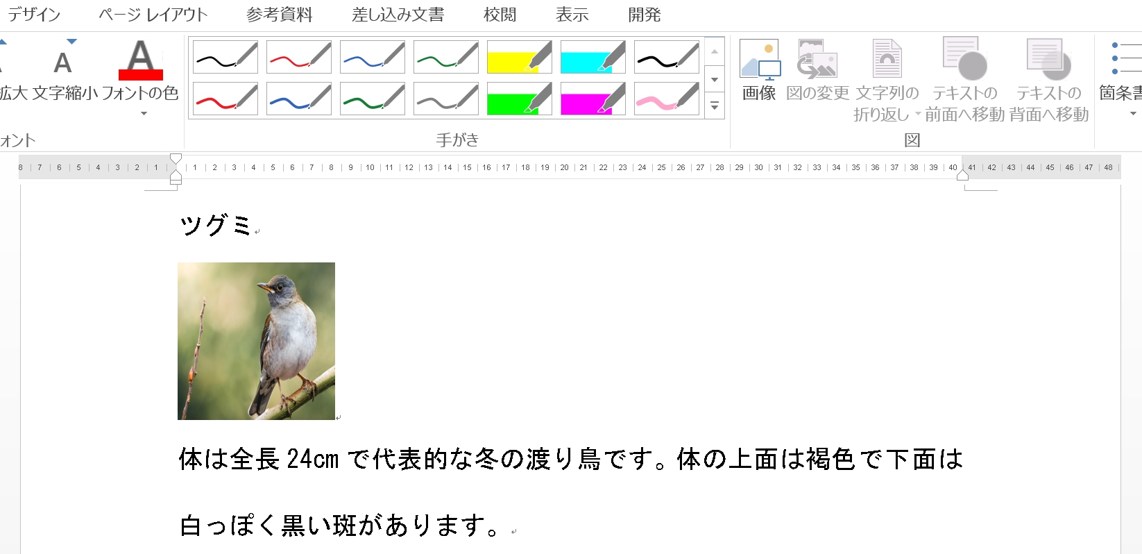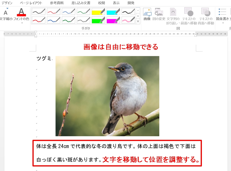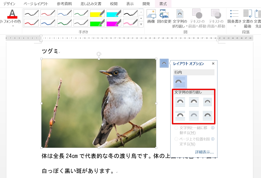 2.「文字の折り返し」のどのメニューを選択しても画像を動かすことができます。