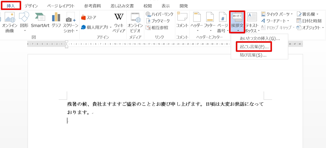 そのような時、ワードでは挨拶文を簡単に挿入できます。