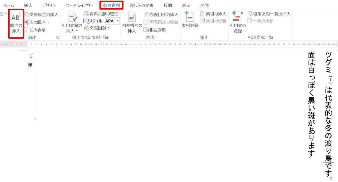 ワード 縦書き文章に脚注番号を縦向きに入れる方法